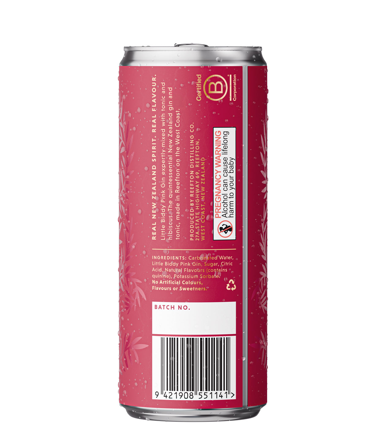 The quintessential New Zealand made G&T created with real Little Biddy Gin – Pink.  Made from fresh Central Otago cherries, with a blush of Hibiscus, this sophisticated gin has notes of citrus and a subtle floral aroma, followed by warm spice.