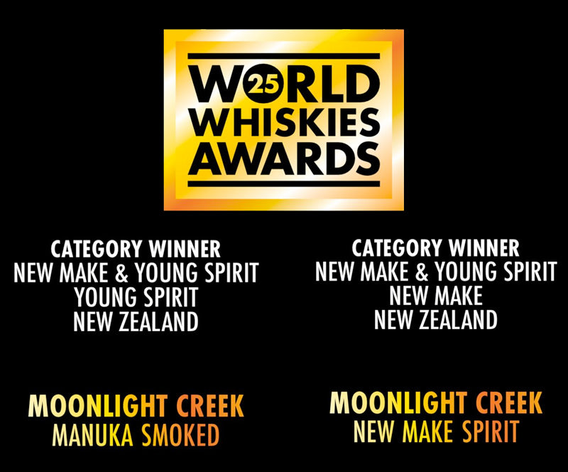 While our Moonlight Creek Whisky rests in cask, it was exhilarating to learn that our New Make Spirit (the spirit that runs from the still and goes into cask for aging) and our Manuka Smoked single malt aging spirit, both won Gold and Best in Category at the prestigious @worldwhiskiesawards